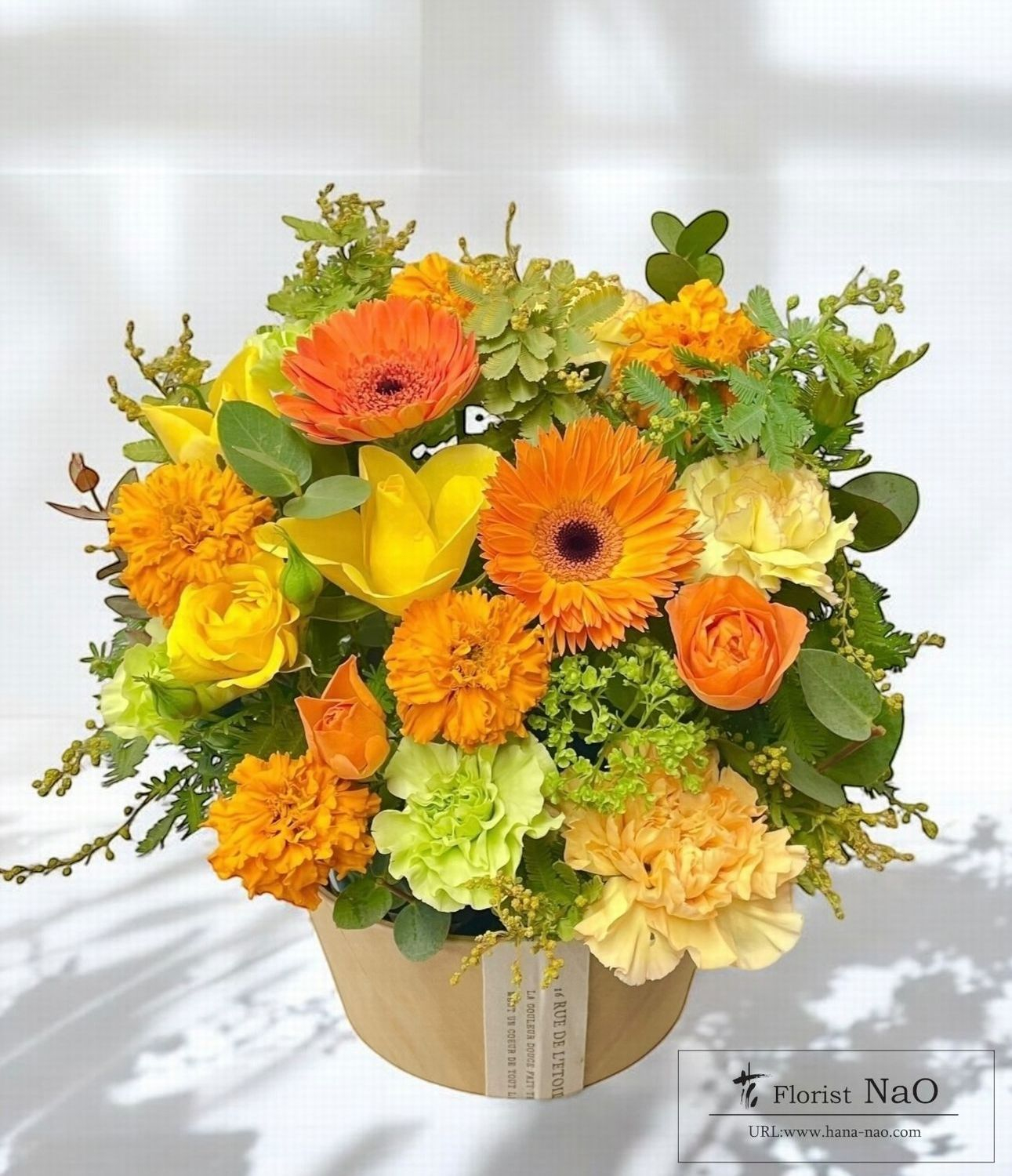■トレジャーボックス黄色オレンジ系アレンジメント