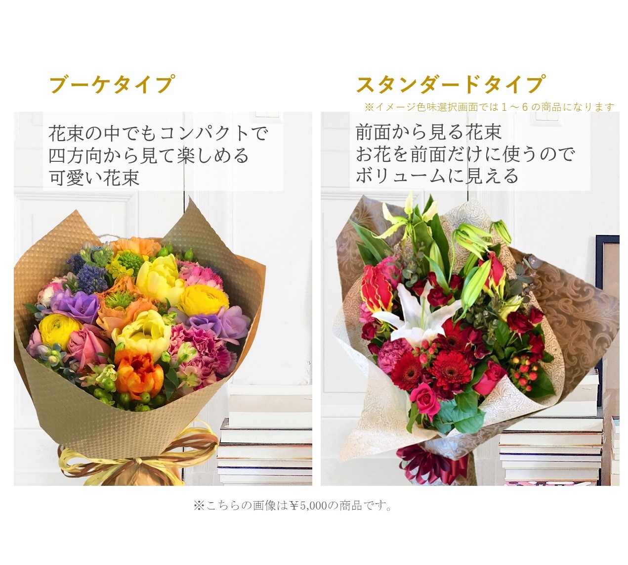 1.女性用おまかせ 2.男性用おまかせ 3.赤系 4.ピンク系 5.黄&オレンジ系 6.青&紫系