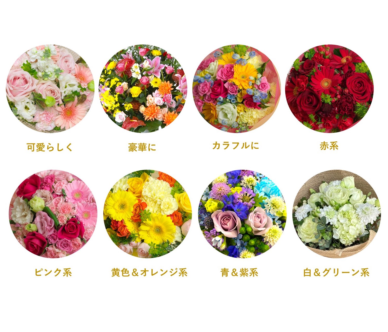 1.プロにおまかせ 2.女性用おまかせ 3.男性用おまかせ 4.豪華に 5.季節の花で 6.可愛らしく