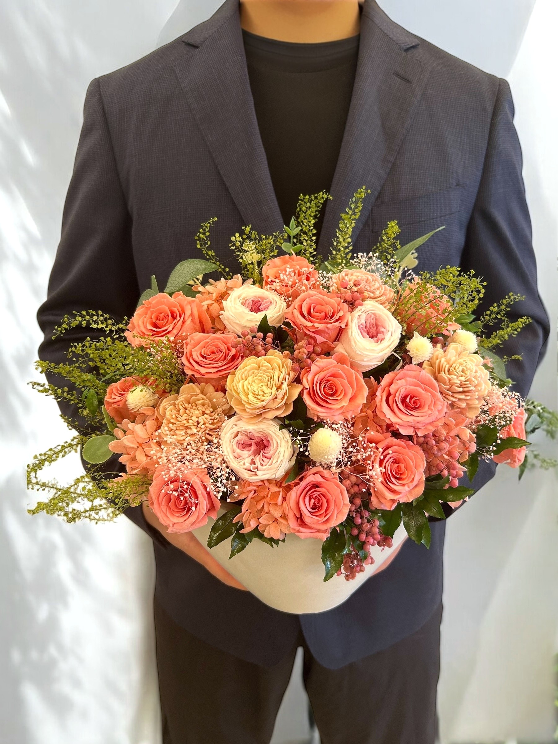 存在感のある大き目のサイズで、様々なお祝い事の主役級ギフトとしてお勧めです。お誕生日、開店祝い、受付花などに是非。
