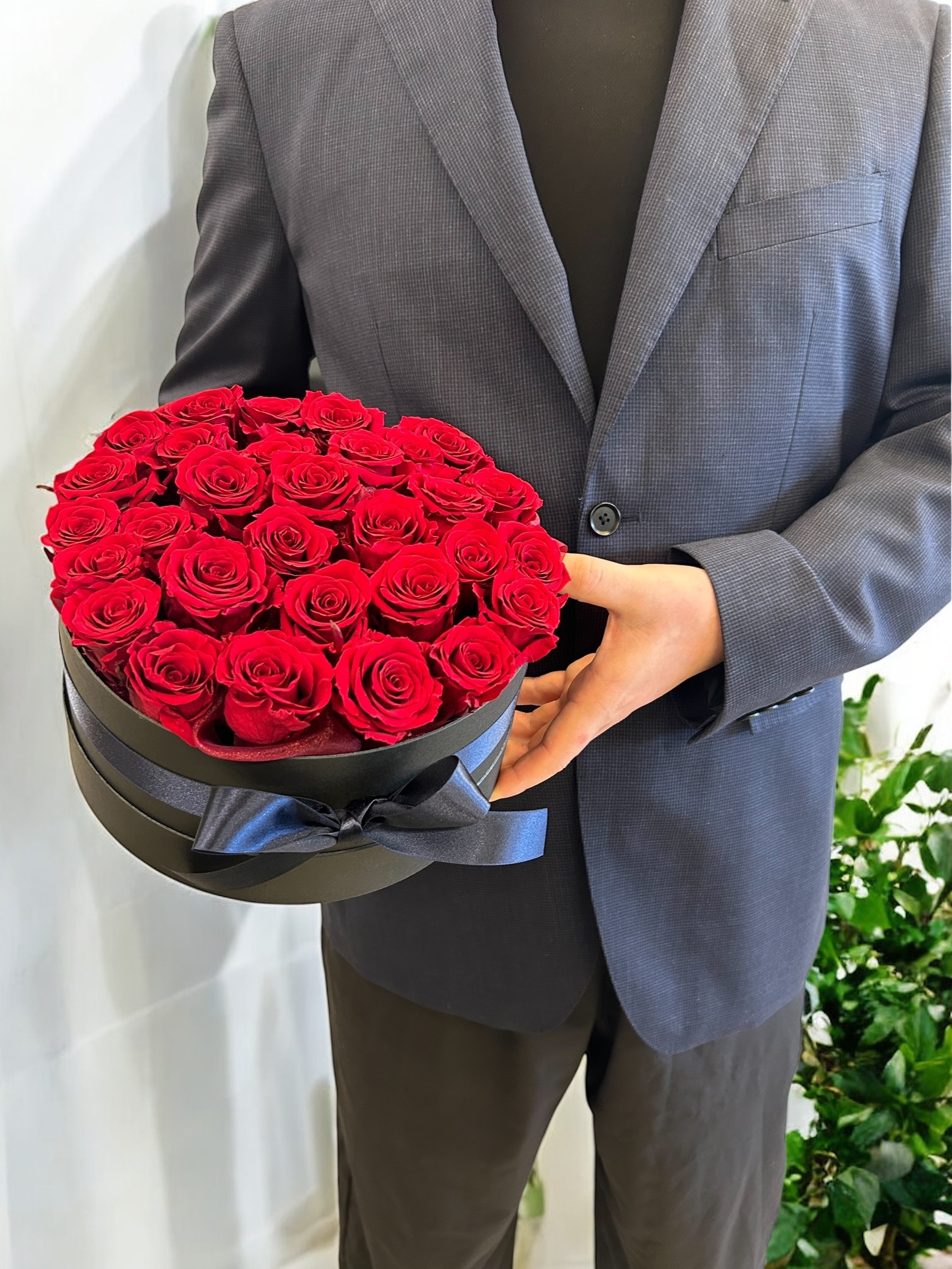 ※こちらの商品はよりお花を美しく見せるため、蓋が閉まらない仕様です。蓋は底面に嵌めたままお渡し・ご鑑賞ください。